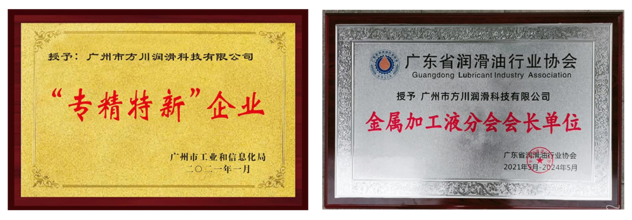 在服務(wù)上,方川員工始終堅(jiān)持多到客戶現(xiàn)場(chǎng)了解客戶情況,多到現(xiàn)場(chǎng)為客戶提供指導(dǎo),發(fā)現(xiàn)問題、解決問題,為客戶詳盡的用油規(guī)劃,個(gè)性化、先進(jìn)的廢液處理方案。方川現(xiàn)在是“專精特新”企業(yè)、廣東省重合同守信用企業(yè)、廣東省工業(yè)潤(rùn)滑油協(xié)會(huì)金屬加工液分會(huì)會(huì)長(zhǎng)單位,這不僅是對(duì)方川的認(rèn)可,也是方川踐行企業(yè)使命、企業(yè)核心價(jià)值觀的體現(xiàn)。